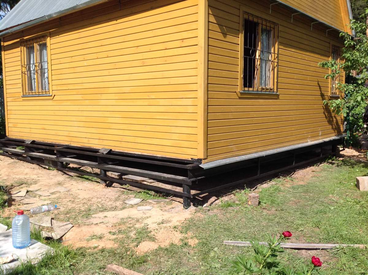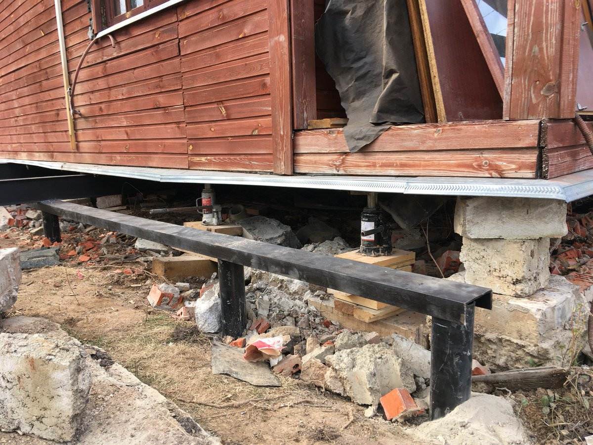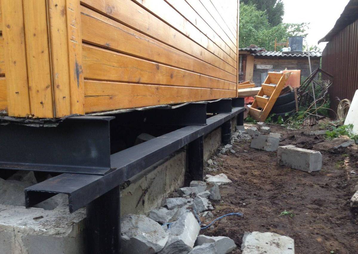 По максимуму облегчаем строение и поднимаем его мощными домкратами.