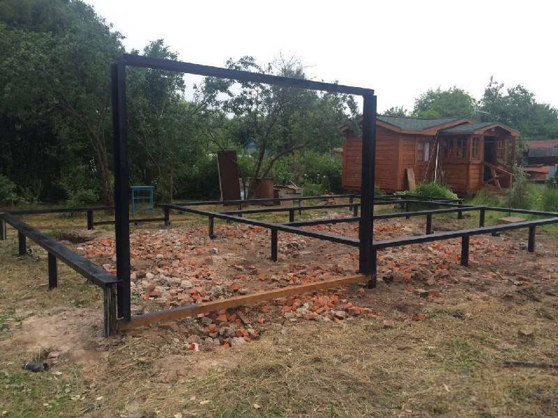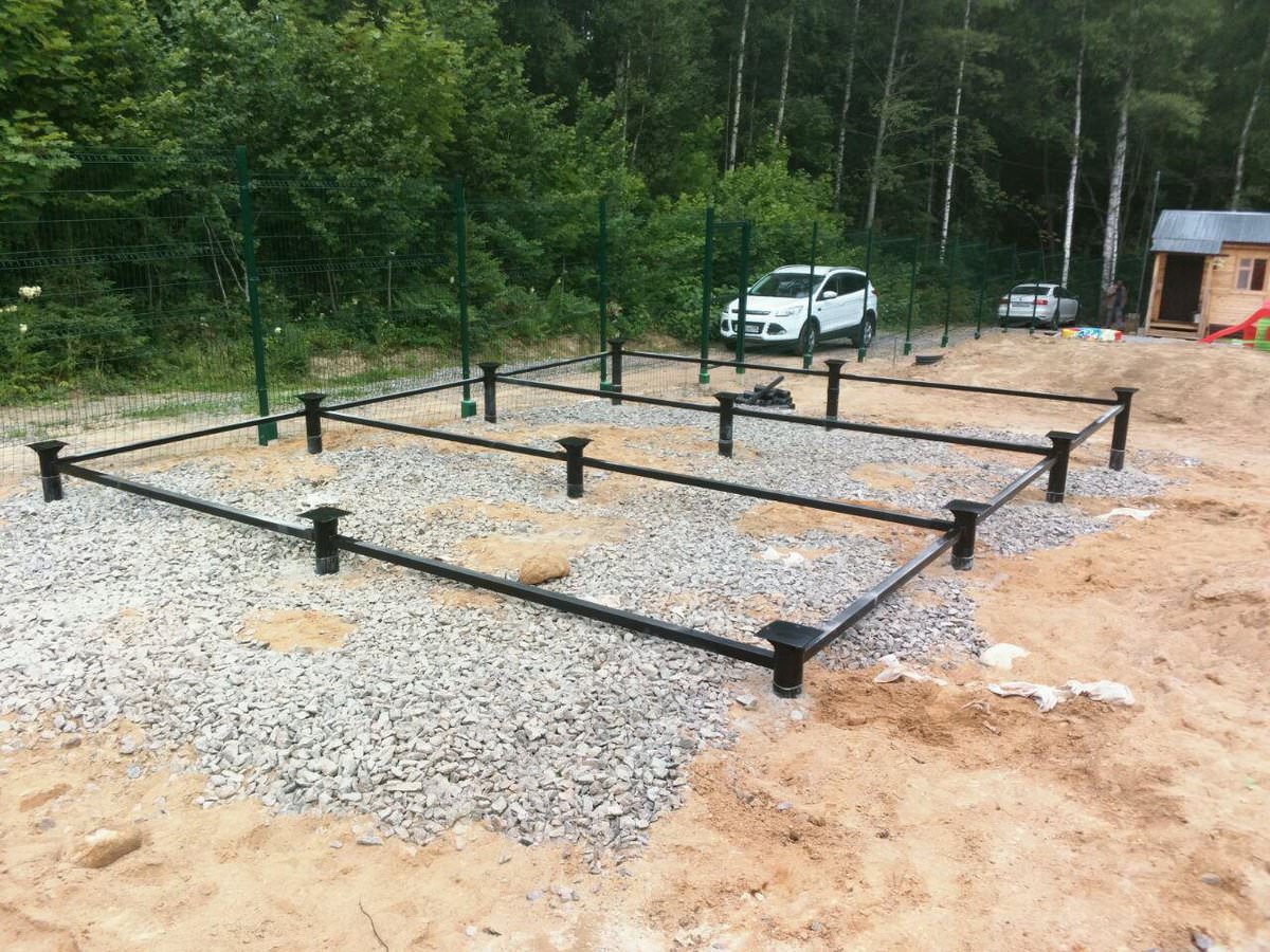 Комплект свай для свайно-винтового фундамента вкручивают вручную или при помощи спецтехники в размеченных местах.